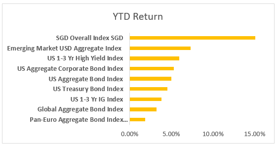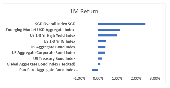 Bond markets were broadly positive in August, with nearly all major indices delivering gains. Once again, Singapore dollar bonds stood out as the top performer. The SGD Overall Index rose 2.5% in USD terms, extending its year-to-date leadership position and highlighting sustained investor demand for high-quality backed by Singapore’s political and currency stability.