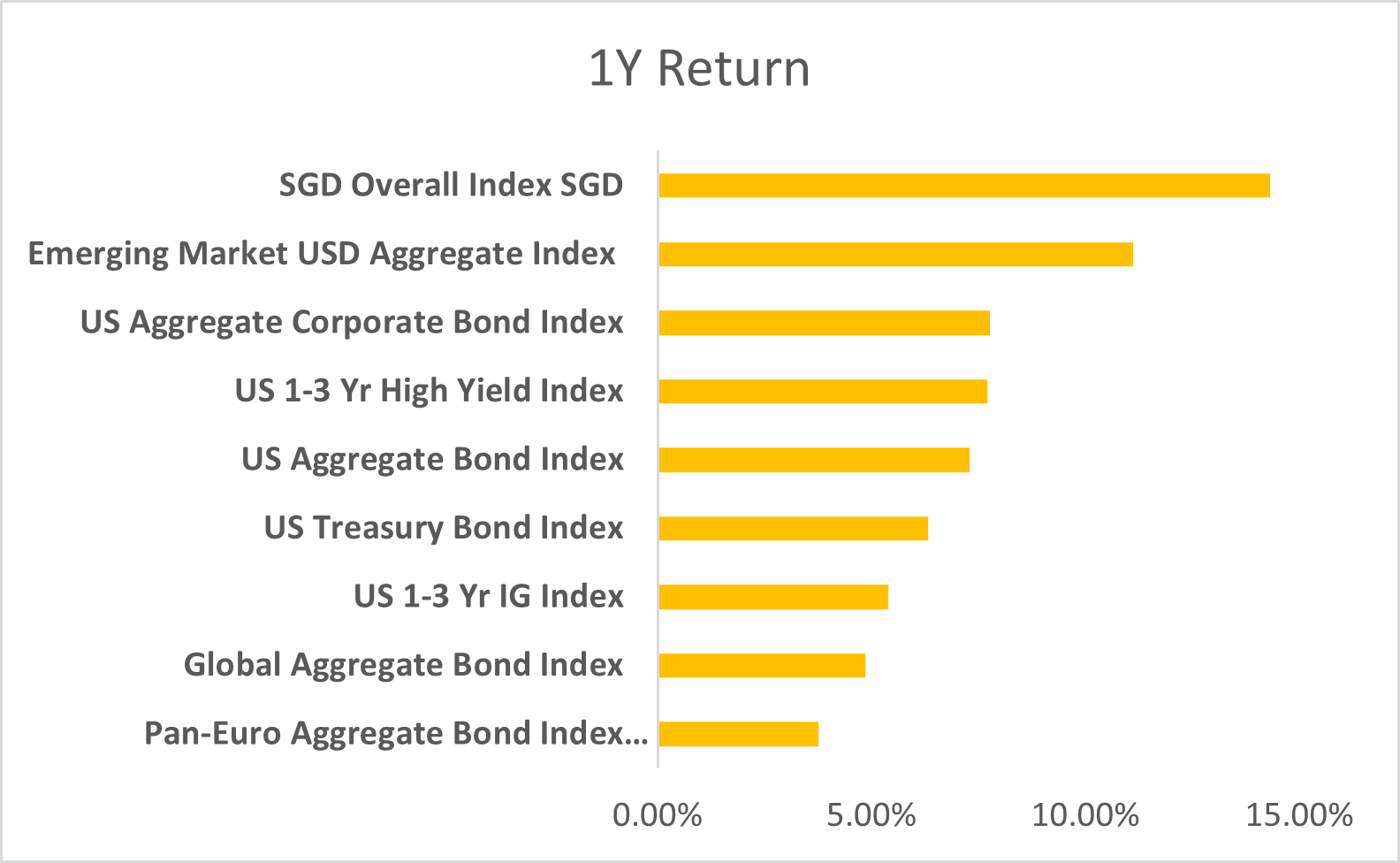 The SGD Overall Index rebounded in December, reversing its recent FX-driven underperformance. While USD strength had weighed on SGD-based returns in prior months, the December recovery reflects stabilizing currency dynamics and persistent strength in domestic credit. This index ends the year as the top performer on a one-year basis, with returns approaching 15%, reaffirming the resilience of Singapore’s fixed income market amid global volatility.